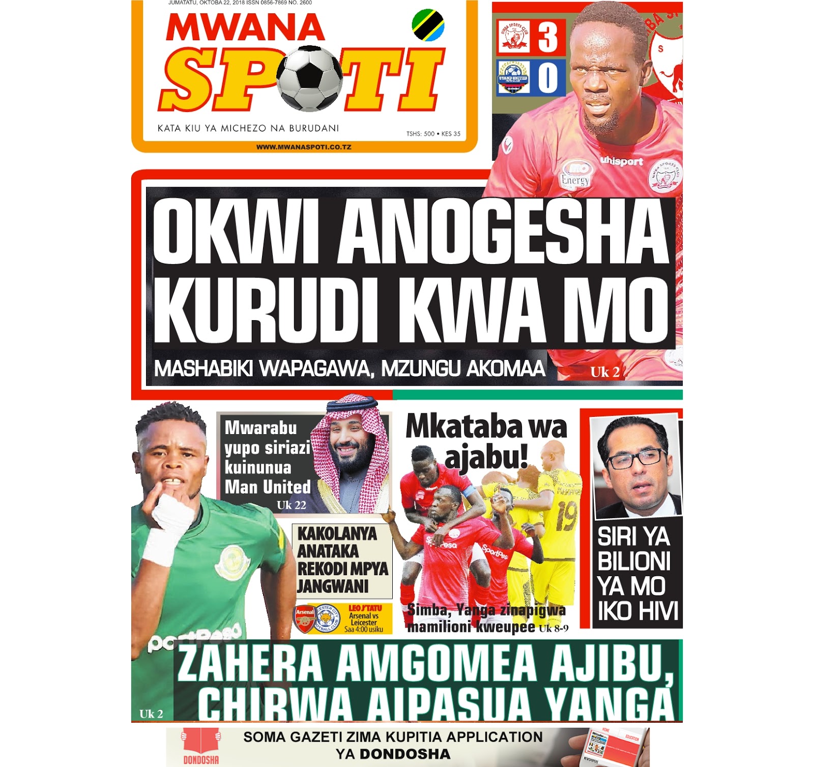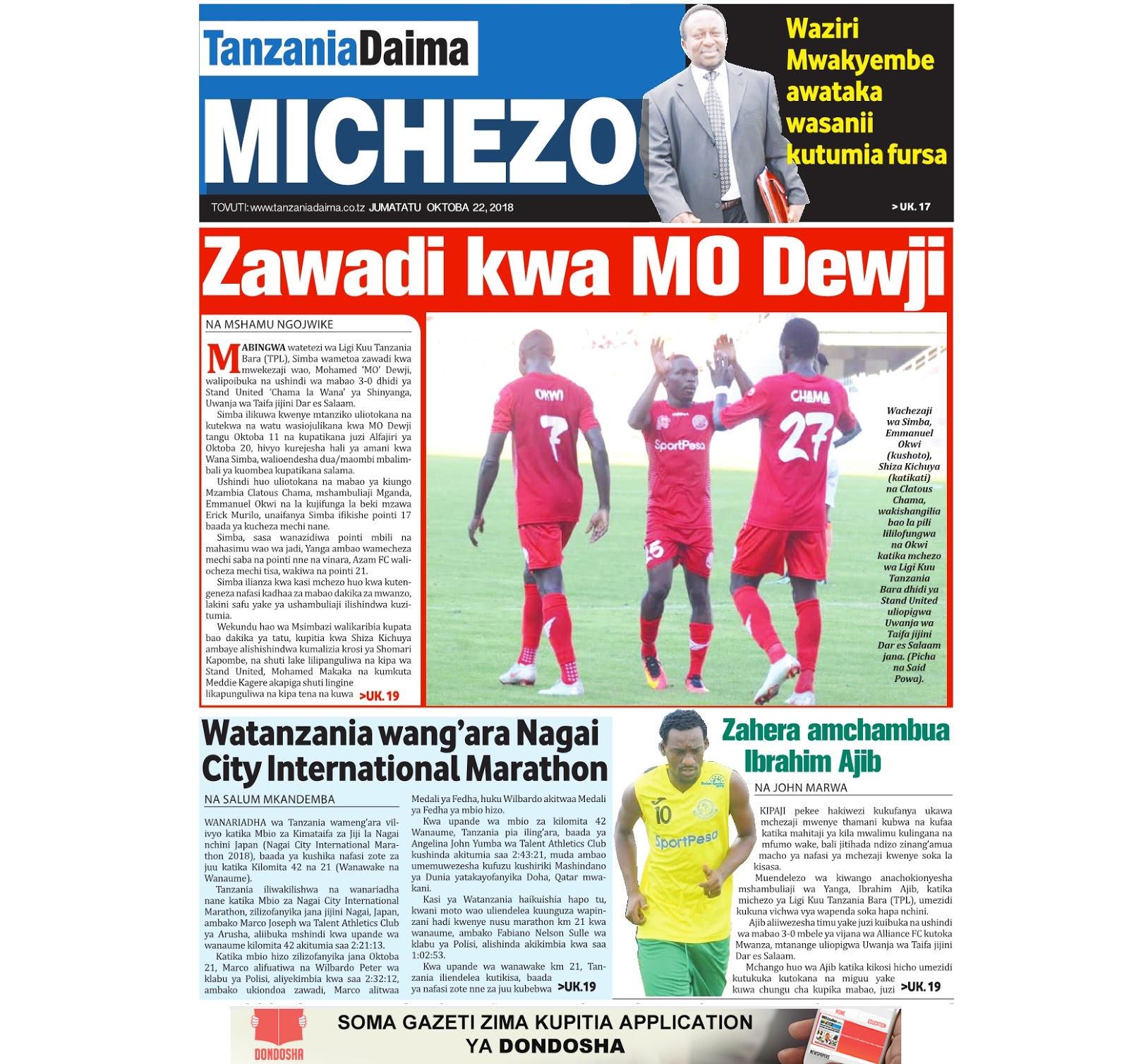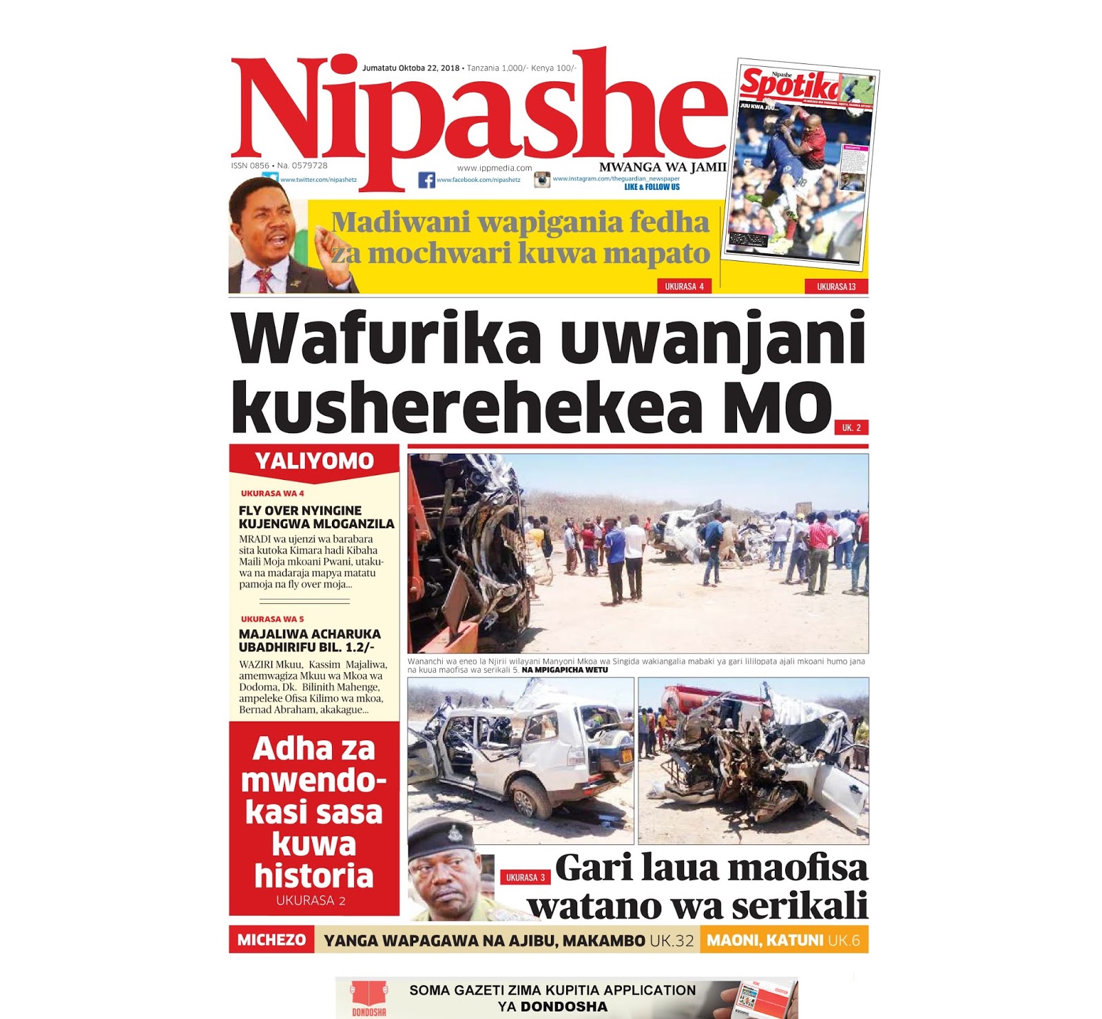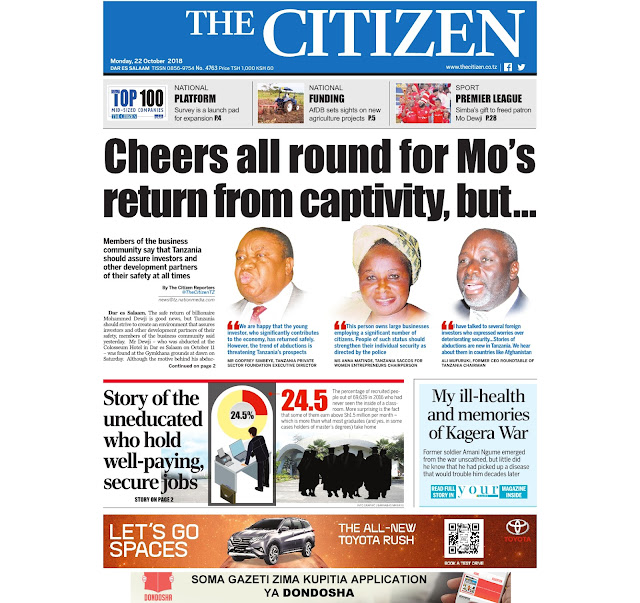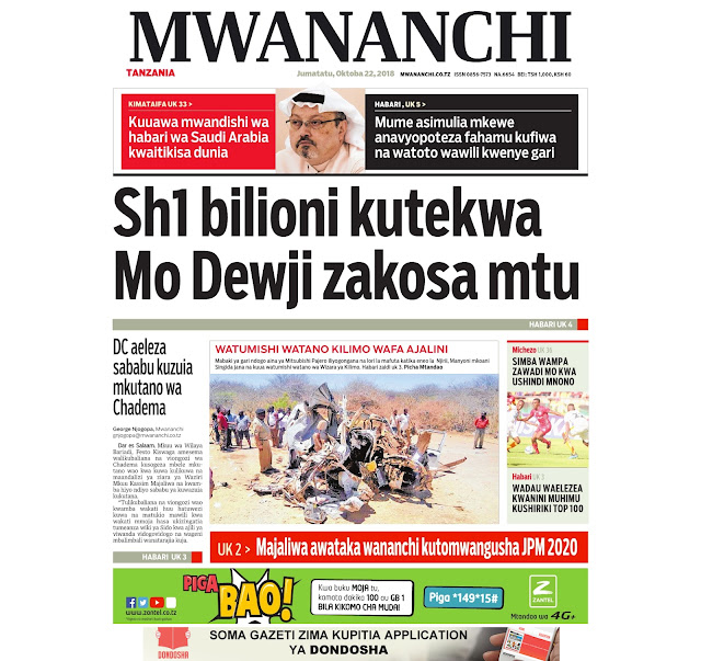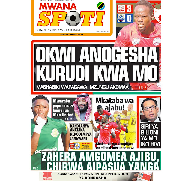 Haya hapa magazeti ya leo tarehe 22/10/2018