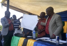 Pichani juu: Mkurugenzi mtendaji wa Halmashauri ya wilaya ya Kilombero Injinia Stephano Kaliwa akimkabidhi mkuu wa wilaya ya Kilombero, Ndg James Ihunyo, ramani ya miradi wa maji ya vijiji vya mwaya, ...