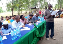 Pichani juu: Mfugaji akisoma Risala kwaajili ya wafugaji wenzie mbele ya Naibu waziri wa mifugo na Uvuvi Naibu Waziri wa mifugo na uvuvi Abdalah Ulega amekutana na wananchi wa Kijiji cha Miwangani ...