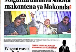 Pichani juu: Mkurugenzi anaemaliza muda wake ndugu Dennis Londo kushoto, akisaini kalabrasha la makabidhiano huku upande wa kulia mhandisi Stephano Kaliwa mkurugenzi mpya, nae akisaini kalabrasha hilo...