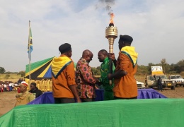 Pichani juu: Mkuu wa wilaya ya Kilombero ndugu James Ihunyo akijadiliana jambo na mkuu wa wilaya ya Ulanga ndugu Jacob Kassoma katika harakati za kuukabidhi Mwenge wilaya ya Kilombero jana katika kiji...