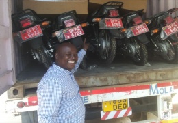 Pichani juu: Mkurugenzi wa halmashauri ya wilaya ya Kilombero Ndg Dennis Londo akionyesha baadhi ya pikipiki walizopewa na TAMISEMI