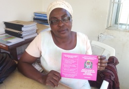 Pichani bi Niindaeli Malugu akionyesha kadi hiyo ambayo husaidia watoto kupata huduma ya chanjo popote walipo.