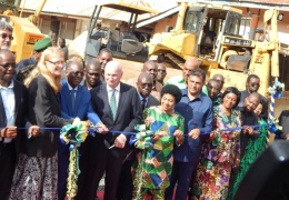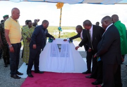Pichani juu mheshimiwa Rais John Magufuli akikata utepe pamoja na baadhi ya wafadhili na viongozi wengine, kuashiria kufunguliwa kwa ujenzi wa barabara ya Kidatu - Ifakara.
