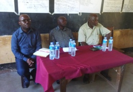 Pichani kutoka kushoto ni Afisa utumishi ndg Abdul Mbimbi, mgeni rasmi Mhe. Ndangalasi na Diwani wa kata ya Ziginali Ndg Shema Ndama, siku ya kufunga mafunzo hayo katika shule ya msingi ya Kiber...