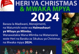 Halmashauri ya Wilaya ya Mlimba inawatakia wanamlimba na Watanzania wote Heri ya Sikukuu...