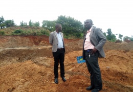 Pichani juu: Mkurugenzi wa Halmashauri ya wilaya ya Mlimba Mhandisi Stephano Kaliwa akikagua eneo la ujenzi wa ofisi za Halmashauri pembeni yake ni Mhandisi wa Ujenzi Injinia Baraka