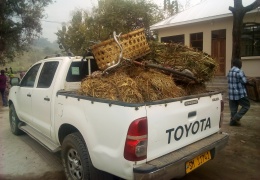 Pichani juu: Gari ya Halmashauri ya wilaya ya Mlimba ikiwa imebeba Matumba hayo ya samaki ambayo yamekamatwa mapema jana jioni.