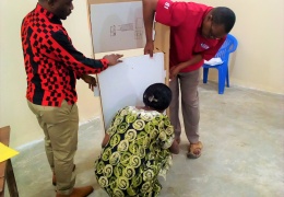 pichani juu: wasimamizi wasaidizi wa uchaguzi jimbo la mlimba ambao ndio wakufunzi wa mada za uchaguzi, wakionesha namna ya kufunga kituturi kwa wasimamizi ngazi ya kata